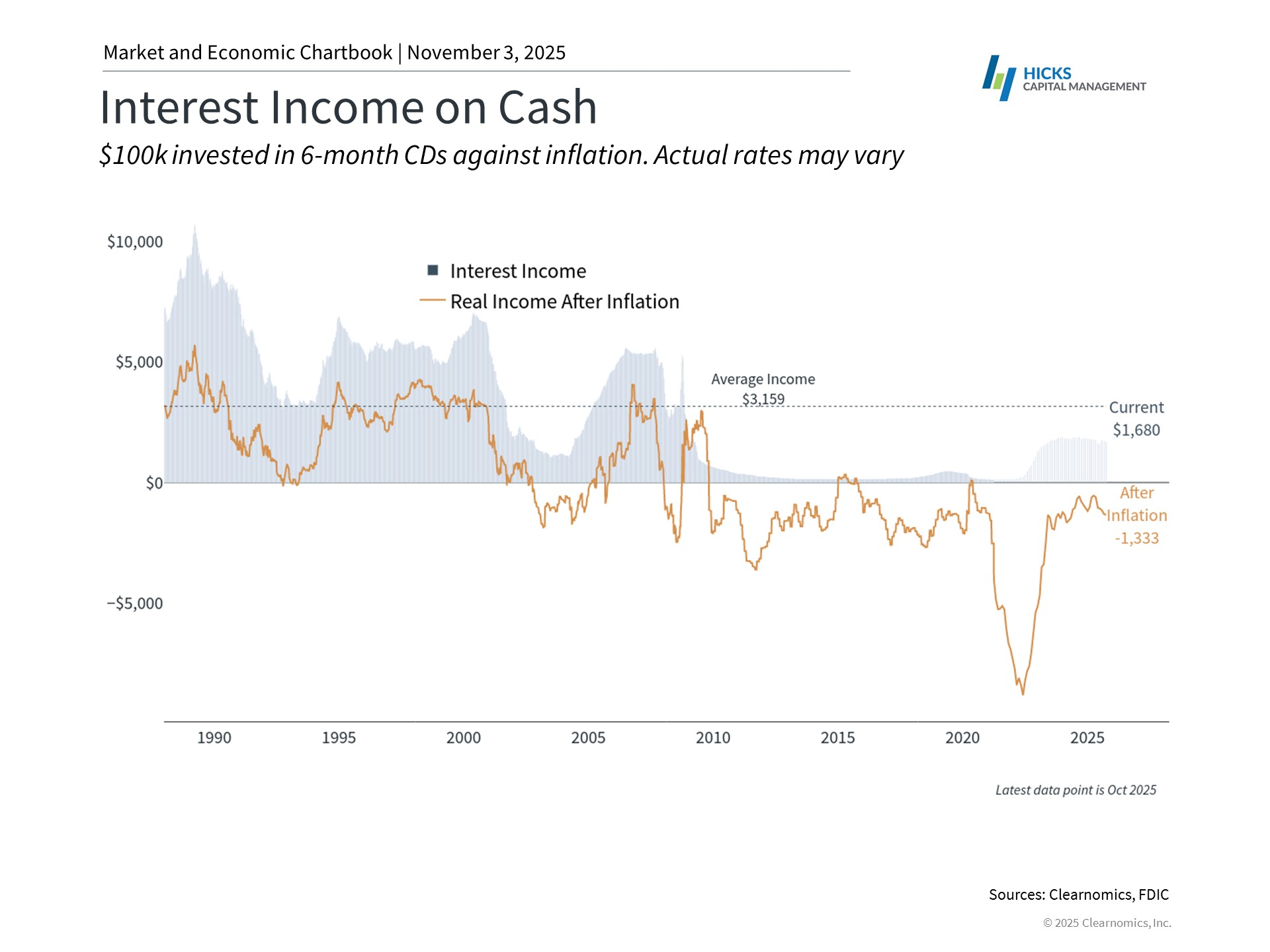 The recent Consumer Price Index data, which had been delayed due to the government shutdown, also has implications for Federal Reserve policy and interest rates more broadly. With inflation moderating and the job market weakening, the Fed is expected to continue gradually lowering policy rates. This shift, while positive for many parts of the economy, will likely reduce the interest income available from cash and money market accounts over time.For retirees who have depended on interest income on their cash holdings over the past few years, this return to a lower interest rate environment may present a challenge. While holding some cash for near-term expenses and emergencies remains important, relying too heavily on cash means missing out on the growth potential of stocks and the attractive yields still available in many bond sectors.The combination of moderating but persistent inflation and declining interest rates creates a challenging environment for conservative investors. Cash loses purchasing power to inflation, and the interest it generates will decline as the Fed continues cutting rates. This makes it even more important for retirees to hold a balanced portfolio that includes growth-oriented assets like stocks, which have historically outpaced inflation over long periods, alongside bonds that can provide income and stability.The bottom line? While Social Security COLA provides some help against inflation, it’s difficult for retirees to rely on this alone. With life expectancies increasing and short-term interest rates declining, investors need portfolios that can provide both income and growth.